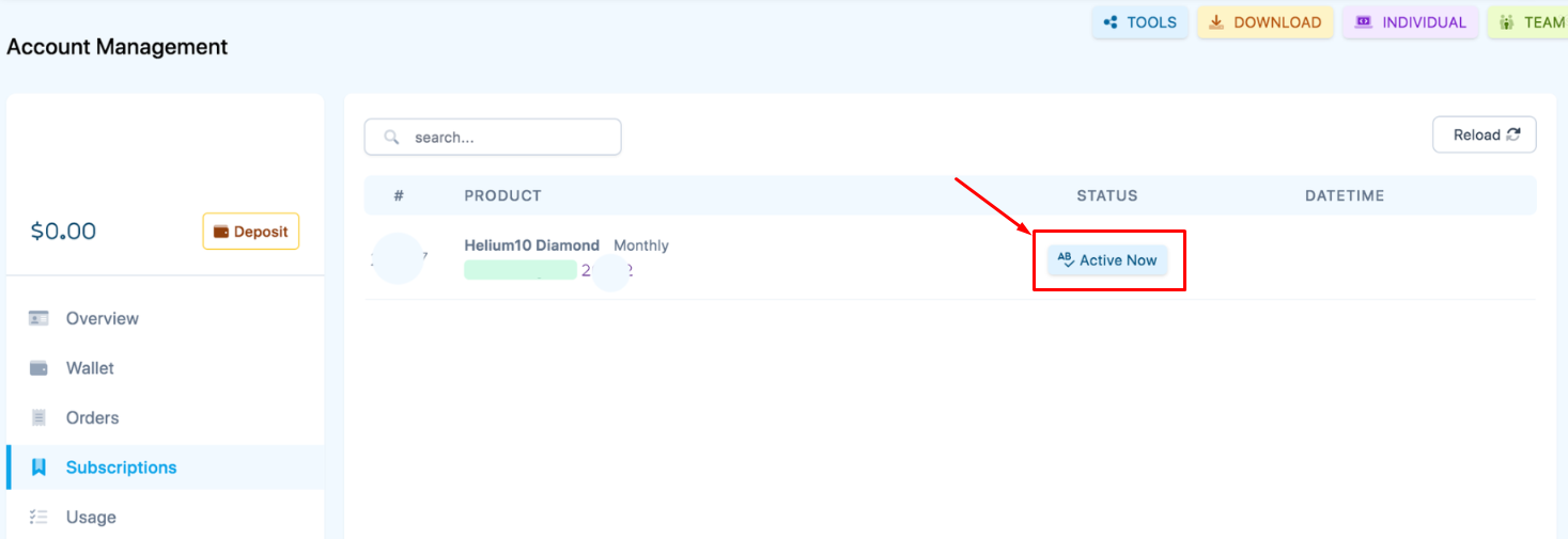 Nếu đơn hàng của bạn chưa được kích hoạt, hãy đi đến [Subscriptions](https://www.henull.com/account/subscriptions) và click <mark style="color:orange;">Active Now</mark> để kích hoạt tool trước.