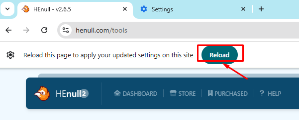 Bước 3: Quay lại tab Henull, Reload page để áp dụng cài đặt