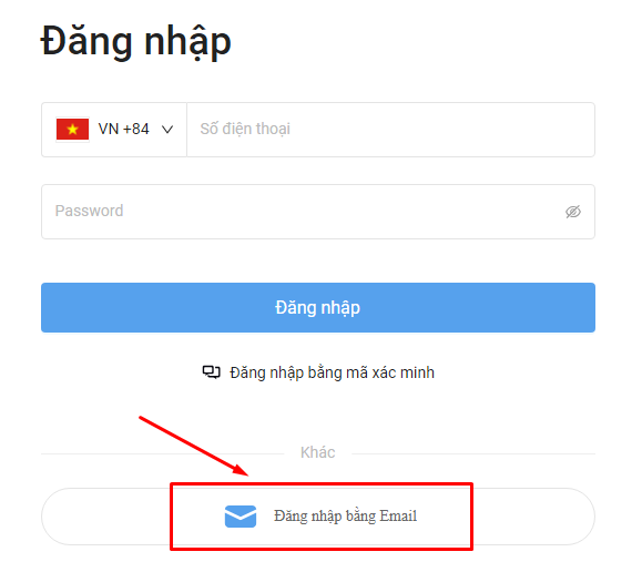 * Nhập email và click vào <mark style="color:orange;">Đăng nhập bằng mã xác minh</mark>.